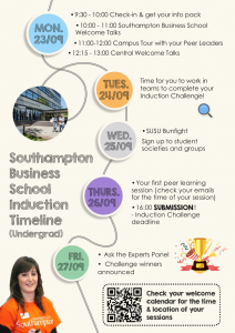 We have prepared the SBS Induction Challenge for you to complete in small groups to help you to find out about studying at Southampton. You’ll find out more about this in your welcome talks during induction.